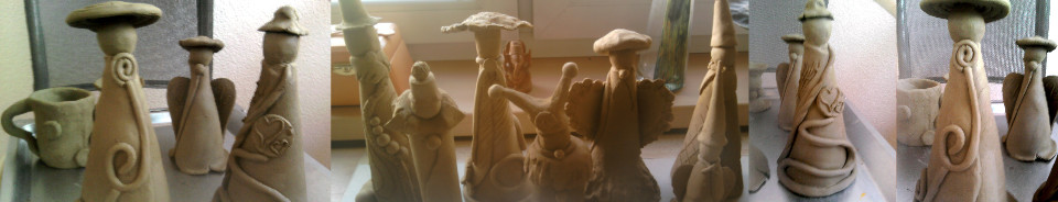 Postavičky, šialky, misky, .... sú vyrábané z pálenej keramickej hliny,